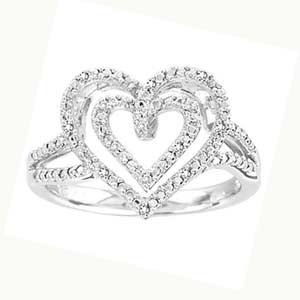 "Sterling Silver Diamond Double Heart Right Hand Ring" Feature