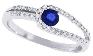RG1812-S A single round shaped september birthstone rich blue sapphire is set in lustrous 14kt white gold settings . Complimented by diamonds set in a unique design, this ring is truly a simple and classic design to have and is perfect for any occasion