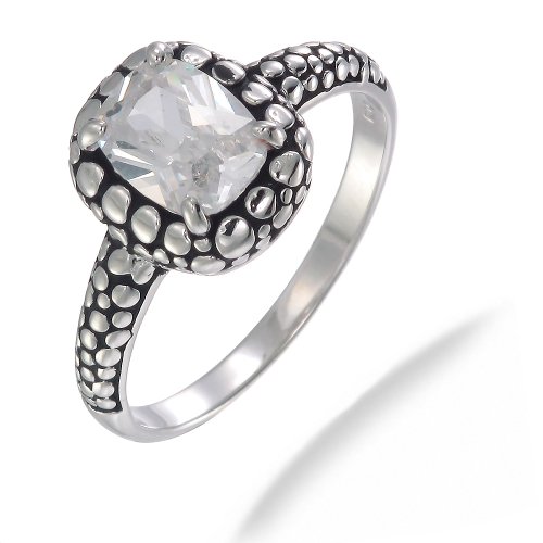 Cheap 1.5 CT. 8x6MM Emerald Cut Cubic-Zirconia Engagement Ring In Sterling Silver With Antique Finish Review