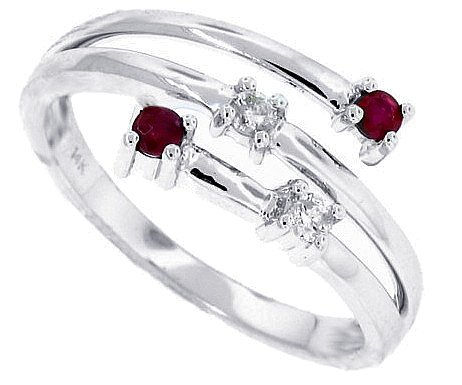 RG1806-R Diamond cut round rich red rubies and sparkling diamonds compliment each other in this one of a kind wrap around ring in 14kt white gold in a polished finish.