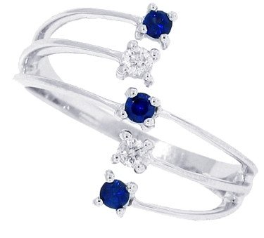 RG1804-S Rich round blue sapphires alternating with bright diamonds are prong set in lustrous 14kt white gold mounting. The september birthstone,along with the sparkling diamonds in a unique design make this the perfect right hand ring to have.