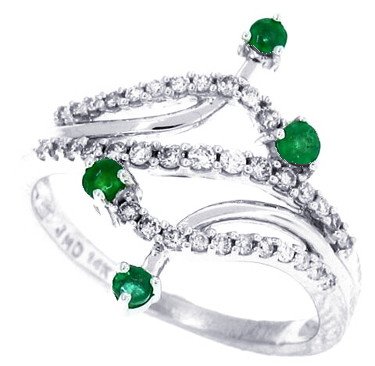 RG11117-E Diamond cut round rich green emeralds and sparkling diamonds compliment each other in this one of a kind right hand ring in 14kt white gold in a polished finish.