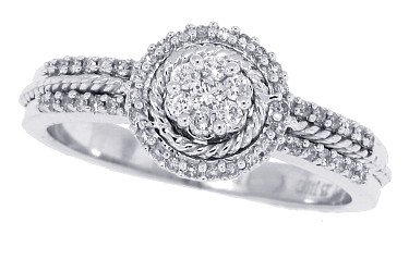 RGFP2758-10-D Gorgeous round diamonds in a pave setting form a cluster at the center of this ring. The beautiful rope design around the center ,along the sides and the lustrous 10kt white gold setting in a polished finish enhances the classic beauty of this ring.