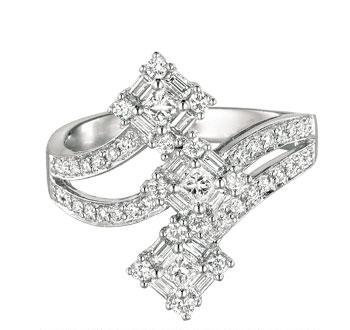 This fashion ring has incredible detail, with three exquisite squares of white gold and diamonds forming a belt across the top. Express your unique sprit with this 14K White Gold .75 CTW Diamond Right Hand Ring.