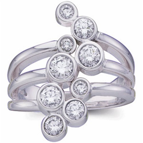 1.00 Ct.T.W. Round Brilliant Cut Diamonds, 14Kt. White Gold. Contemporary Diamond Right Hand Ring. A better way to express your unique spirit and style is with this contemporary diamond right hand ring. Fashioned in glistening and rich 14Kt. White Gold. Nine one half carat round brilliant cut diamonds sparkle amid a gracefully swooping cutout ring design. This ring will add a touch of glamour to your current jewelry wardrobe. Gold White 14Kt. Approx Wgt 9.66 gms. Finish Satin Diamonds Round Brilliant Cut Color Avg. H Clarity Avg. SI Approx Carat 1.00 Ct.T.W. # Of Pcs. 9 Setting Bezel Availability In Stock Shipping Usually in 24 to 72 Hours. Free Standard Shipping!. 100% Satisfaction Guaranteed!. 30-Day Return Policy Sku # TL63373