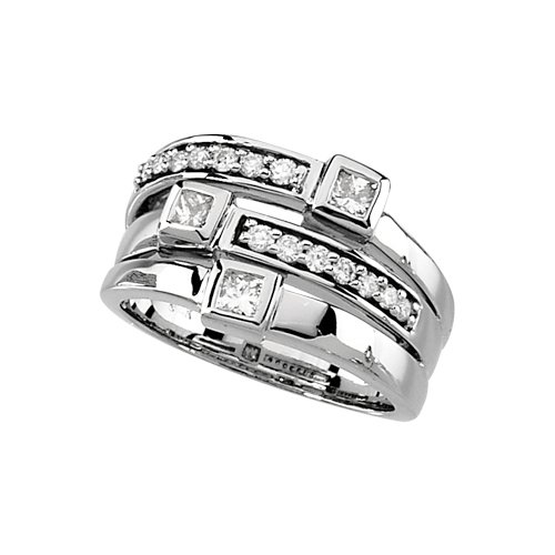 | 14K White Gold 3/4 ct. Round and Princess Cut Diamond Right Hand Ring |