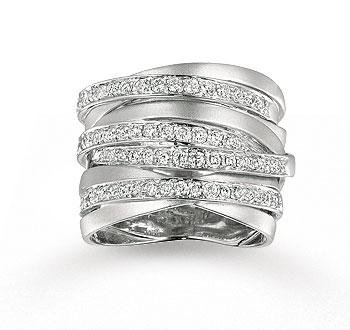This fashion ring combines 4 laye of plain white gold with 4 laye of beautiful diamonds. Express your unique sprit with this 14K White Gold 8 Layer 1 Carat Diamond Right Hand Ring.