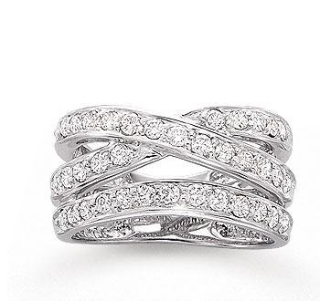 This fashion ring has the simple elegance of a crossover diamond pattern. Express your unique sprit with this 14K White Gold Crossover 1 Carat Diamond Right Hand Ring.