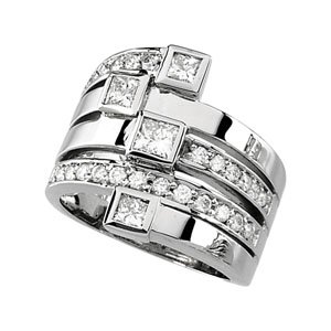 14k White Gold Diamond Right Hand Ring 1 1/3ct - Size 6 - 1.30 Carat Gemstone Weight in 14k White Gold - JewelryWeb Style: TLR131697W - FREE gift-ready jewelry box