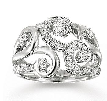 This fashion ring combines dazzling spirals of white gold and diamonds. Express your unique sprit with this 14K White Gold Spiral .50 Carat Diamond Right Hand Ring.