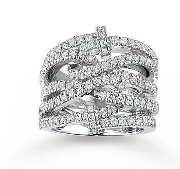 This fashion ring has a complex layering of white gold and diamonds. Express your unique sprit with this 14K White Gold Trendy 1.35 CTW Diamond Right Hand Ring.