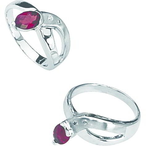 "Sterling Silver 0.02 cttw Garnet & HI Diamond Right Hand Ring Sz 7" Overview