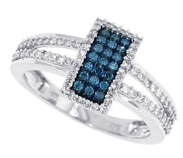 Cheap 0.50ctTW Blue Diamond Right Hand Cocktail Ring in 14Kt White Gold Review