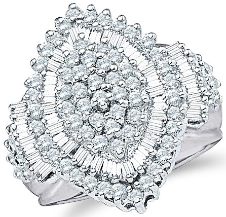 Cheap 10k White or Yellow Gold Large Marquise Shape Center Setting Round Cut & Baguette Engagement or Right Hand Cocktail Diamond Ring 23mm (2.03 cttw, H Color, I1 Clarity) Review