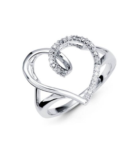 Swirling with one big heart with .14 ct round diamonds all down half of the heart, this 14K solid white gold ring shimmers. Sassy style with a statement which says to come on and see what gift I got from my sweetheart.Condition: New