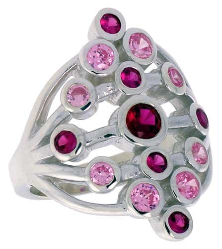 Cheap Highest Quality Sterling Silver 1" (25mm) wide Diamond-shaped Right Hand Ring, w/ Bezel Set Brilliant Cut Ruby & Pink Tourmaline-colored CZ Stones (Available in Sizes 6 to 10), size 7 Review