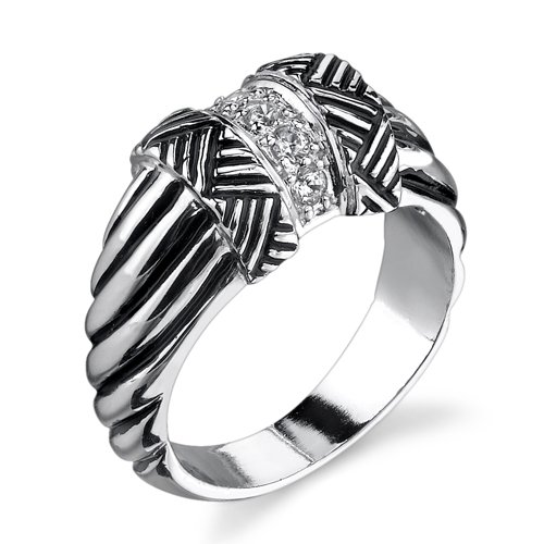 Cheap Stunning Glamour: Sterling Silver Designer Inspired Cable Style Size 6 Right Hand Ring with CZ Diamonds Review