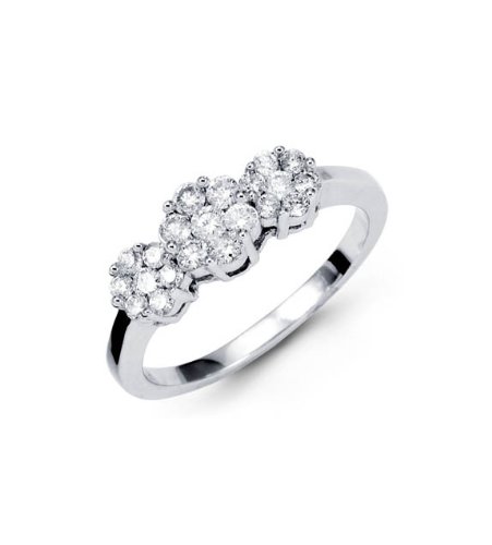 We are closed on Oct 13 to Oct 23 and will reopen Oct 24 (Monday). There may be delays in processing orders and answering emails. We apologize for the inconvenience.Perky flowers in a trio full of round diamonds make this right-hand fashion ring a sweetly adored gift and possession. This 18K solid white gold polished beauty makes a great gift for any occasion, including a just because kind of gift.