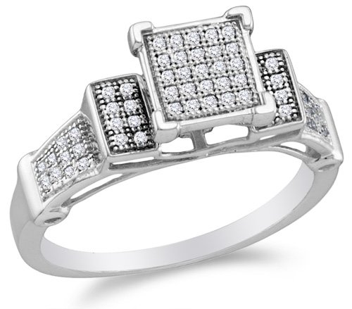 Cheap 10K White Gold Diamond Engagement OR Fashion Right Hand Ring Band - Square Princess Shape Center Setting w/ Micro Pave Set Round Diamonds - (1/5 cttw, G - H Color, SI2 Clarity) Review