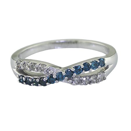 This is a beautiful Blue & White Diamond Ring in 10K White Gold. The Diamonds are I2 Clarity, Blue (Color Enhanced) and H-I (White) Color. This ring will be a perfect gift for any occasion.