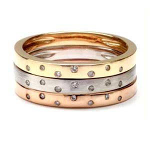 This is a fantastic set of 3 14k gold rings; 1 of each in glossy pink, matte white and glossy yellow. These stackable bands are set with sparkling diamonds. Wear 1, 2 or all 3 - mix and match. Or opt to wear them on both hands. The choice is yours! SKU# 114-1115