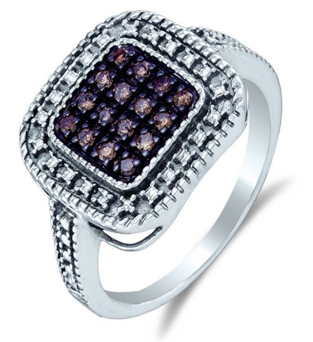 Cheap .925 Sterling Silver Plated in White Gold Rhodium White and Chocolate Brown Diamond Milgrain Halo Engagement OR Fashion Right Hand Ring Band - Square Princess Shape Center Setting w/ Micro Pave Set Round Diamonds - (1/5 cttw, G - H Color, SI2 Clarity) Review