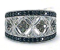 AWESOME, AWESOME, AWESOME! I utterly LOVE this beautiful diamond right hand ring! It has .50 ctw of round, NATURAL diamonds in black, brown (cognac) and clear! Isn't it fabulous! The setting is solid 14k white gold. The crown of the ring is 12 mm wide, tapering to 3.5 mm on the shank. It weighs 5.9 grams and is a size 6.75, slightly sizable by your local jeweler.