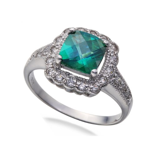 Cheap 7MM Cushion Cut Green Topaz Ring In Sterling Silver 1.50 CT (Available In Sizes 5-9) Review