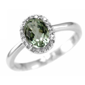 "Natural 1.58ct Oval Green Amethyst and Diamond 14k White Gold Right Hand Ring" Feature