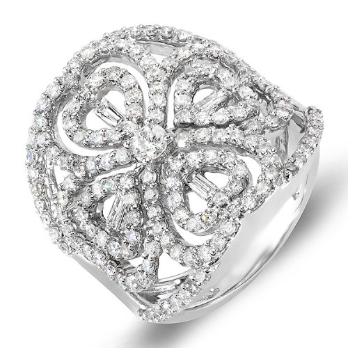 Cheap 14k White Gold Round and Baguette Diamond Ladies Designer Cocktail Right Hand Ring (1.85 cttw,G-H Color, I1-I2 Clarity) Review