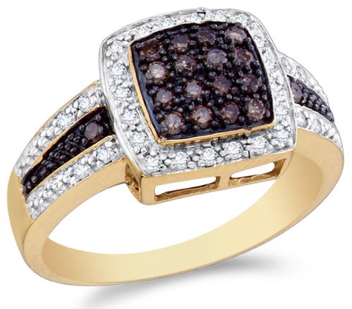 Cheap 14K Yellow and White Two Tone Gold White and Chocolate Brown Diamond Halo Engagement OR Fashion Right Hand Ring Band - Square Princess Shape Center Setting w/ Channel Set Round Diamonds - (1/2 cttw, G - H Color, SI2 Clarity) Review