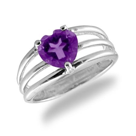 "7MM 1.35 CT Heart Cut Amethyst Ring In Sterling Silver (Available in Sizes 5-9)" Overview